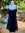 Blue Short Sleeved A-line Dress with Pleated Skirt
